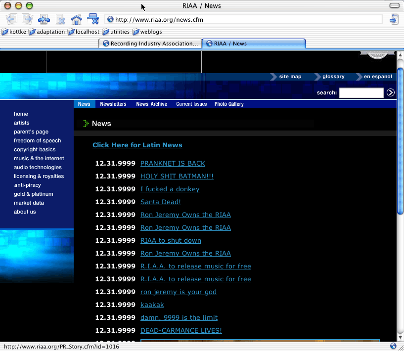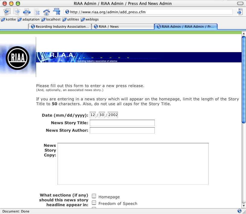 RIAA add press release form screenshot. and no, I didn’t actually add or modify any press releases.
