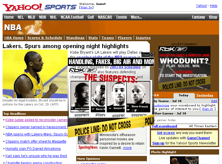 You’d think that Yahoo! could do a better job in coordinating their advertising with their news content. screenshot of Kobe pic right next to Reebok “Whodunit?” ad