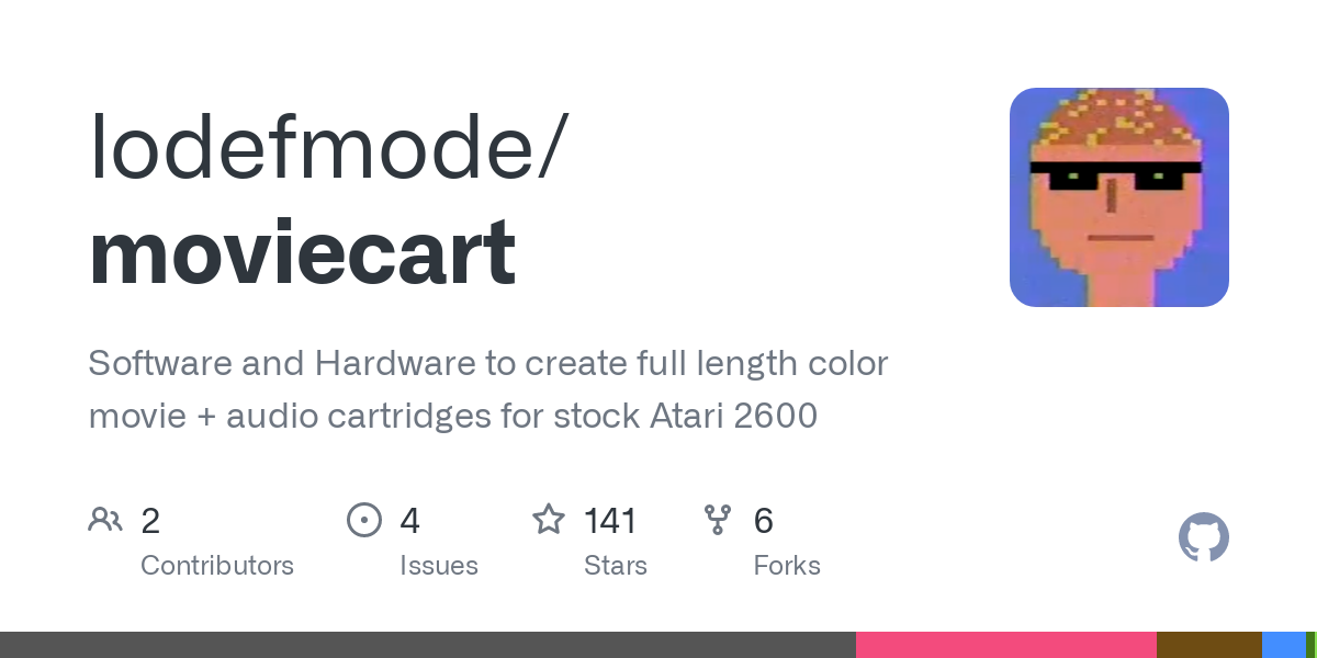 With MovieCart, you can create Atari 2600 cartridges that will play full-length movies. “Joystick controls brightness, volume, and shuttle position. Console switches control b/w, ten second rewind and full rewind.”