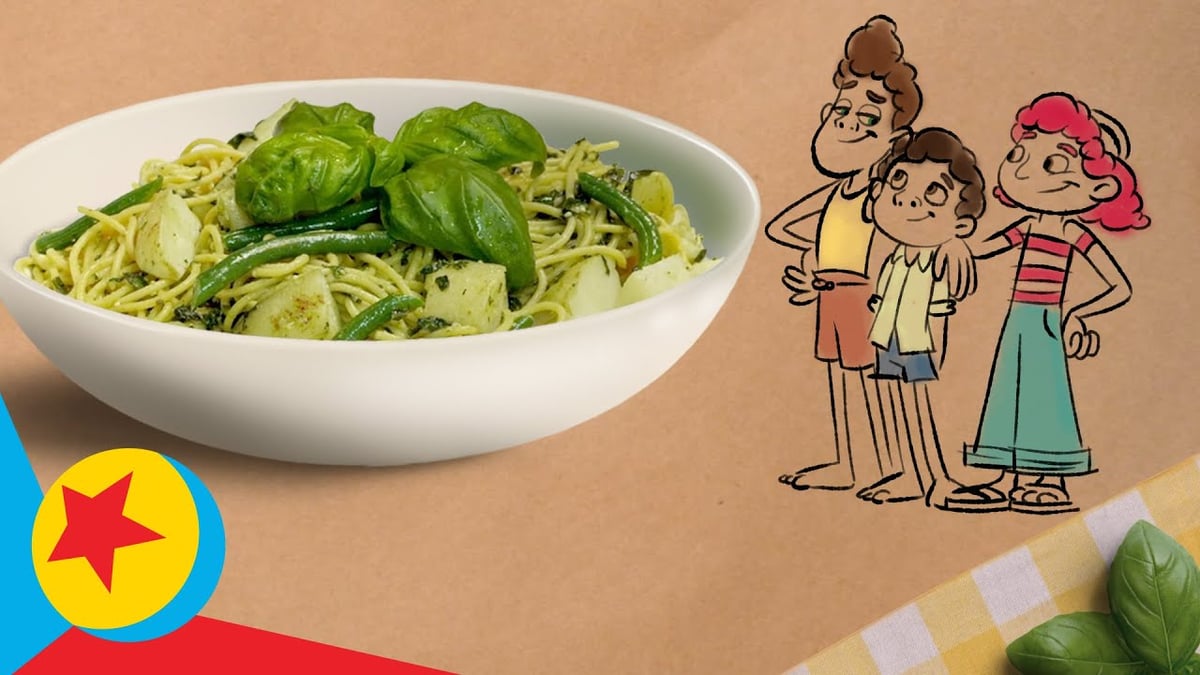 Cooking with Pixar, a playlist of videos with recipes inspired by Luca (trenette al pesto), Turning Ref (congee), Coco (tamales), and Incredibles 2 (cookies).