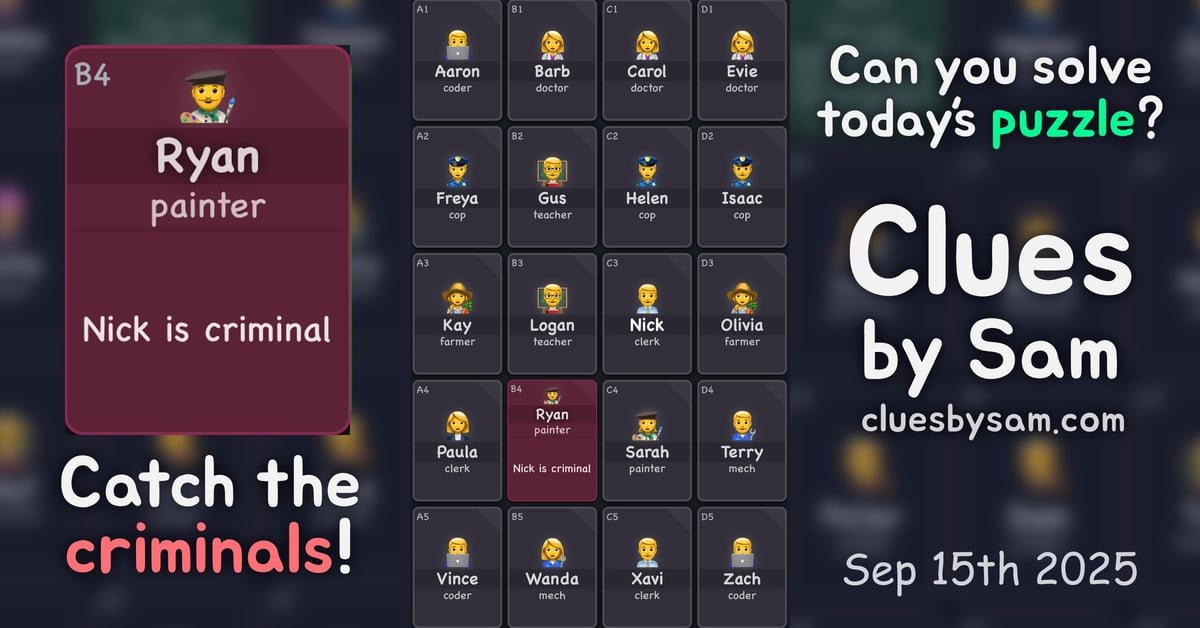Fun logic puzzle game called Clues by Sam. “Your goal is to figure out who is criminal and who is innocent.”