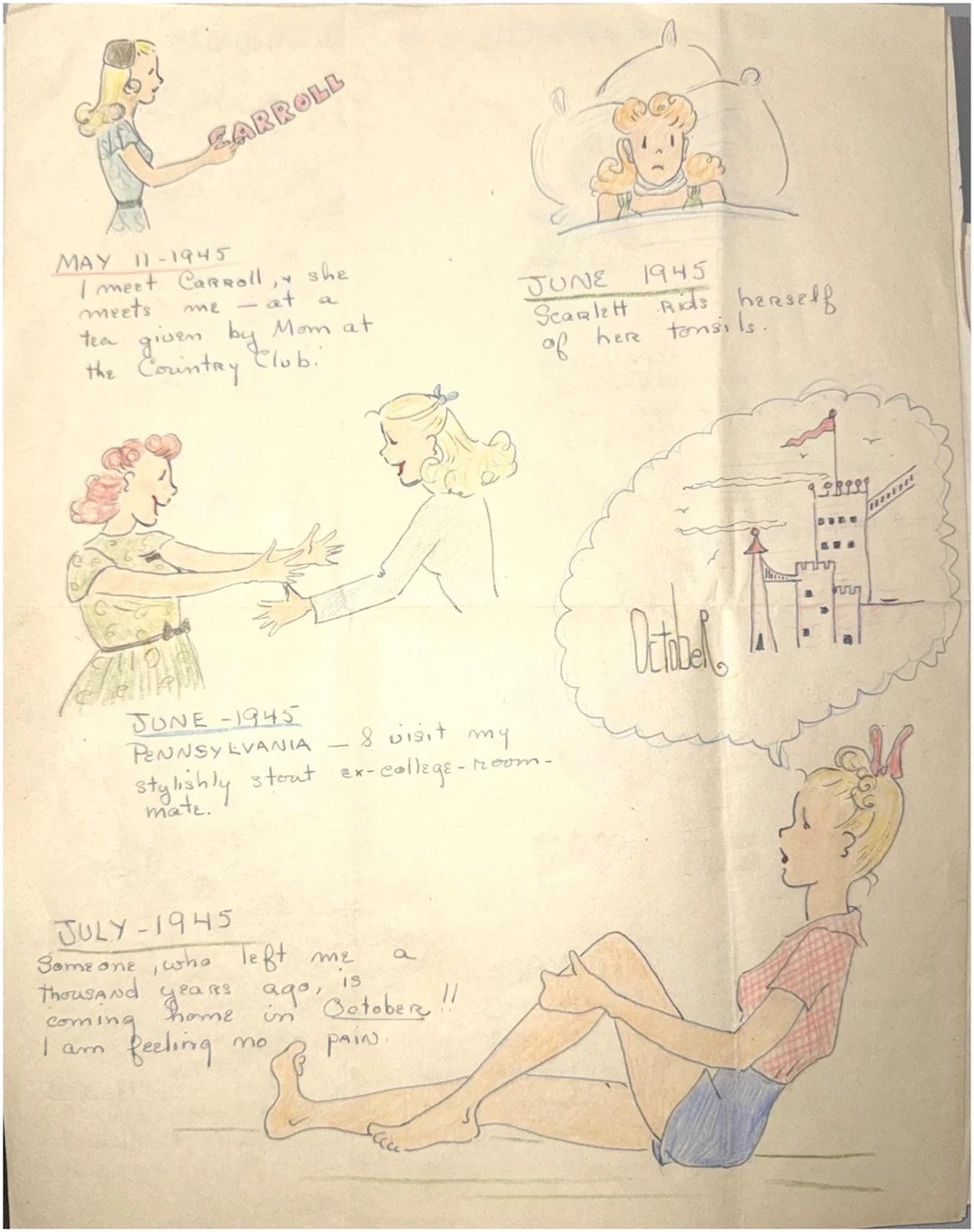 This is wonderful: a Redditor uploaded some of their grandmother’s comics that she made in the 1940s, documenting her marriage to the deployment of her husband for World War II.