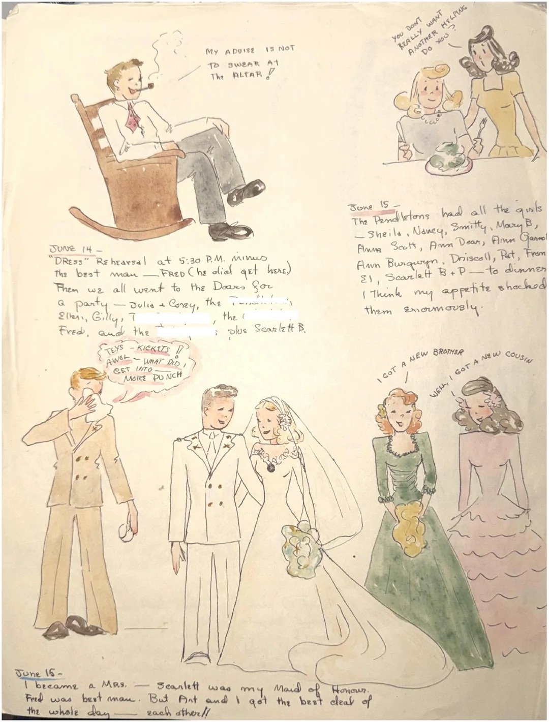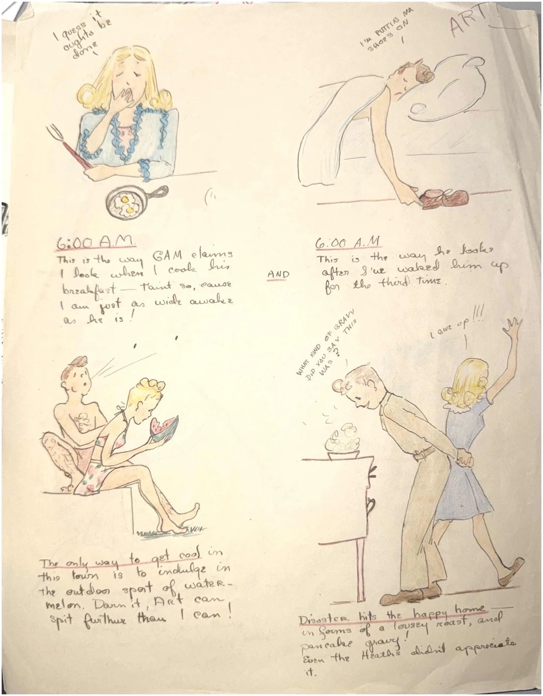 I never got to meet my grandma, she passed away young in 1977 but finding her 1940s sketches felt like she was finally introducing herself to me. She was so talented, and as you can see, she had absolutely zero filter (I finally understand where my mother and I get it from).