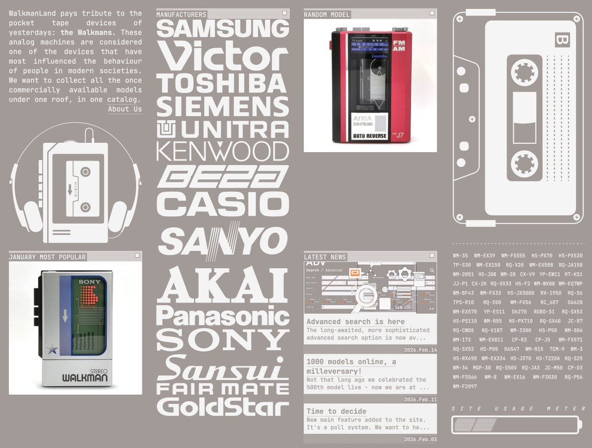 Top tier nerd shit. “WalkmanLand is a tribute to the long forgotten portable music players from the 80-90s. The Walkmans.”